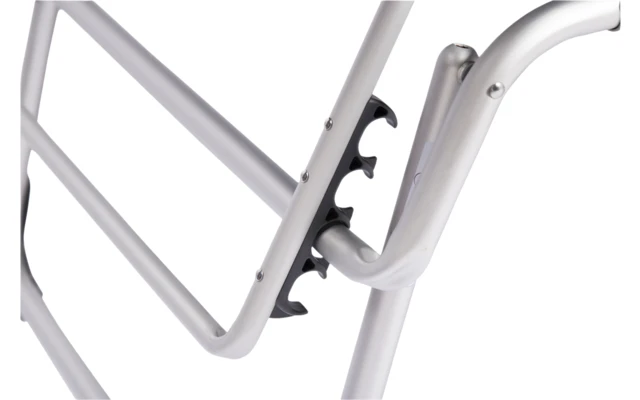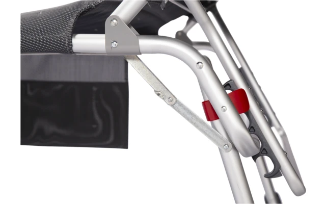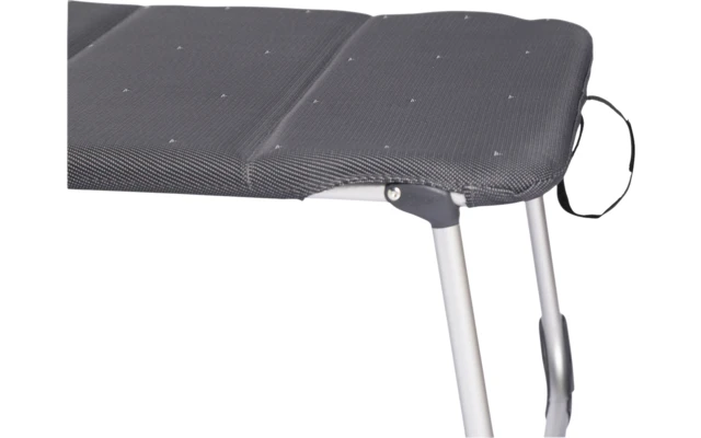Eine sehr komfortable und extra hohe Liege. Die Liege ist vollständig gepolstert und kommt mit einem Kissen für maximale Entspannung. Durch die offene Gewebestruktur verbleibt keine Feuchtigkeit in diesem hochwertig gepolsterten Stoff. Die Rückenlehne dieser Liege ist 4-fach verstellbar. Sie bietet optimalen Komfort durch die elastische Befestigung des Stoffes. Für ein leichtes Platznehmen und Aufstehen ist die Liege extra breit, extra lang und extra hoch. Die robusten Stabilisatoren sorgen für optimalen Halt auf verschiedenen Untergründen. Inklusive praktischer Seitentasche für Strandaccessoires. Die Liege kann sehr flach zusammengeklappt werden, und ist mit den Tragegriffen leicht zu tragen.
