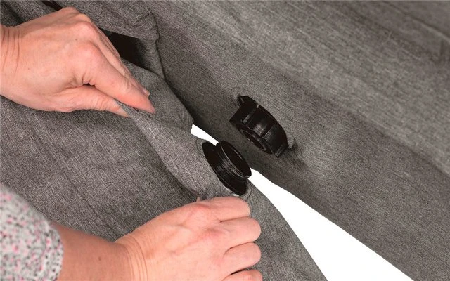 – Strapazierfähiger, zweifarbiger Bezug mit PU-Beschichtung, einem UV- Schutzfaktor von über 30 und einer Wassersäule von 850 mm